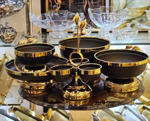 سرویس پذیرایی 4 تیکه پروانه مشکی طلایی